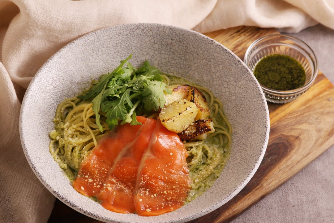 ■スモークサーモンときたあかりのバジルクリームパスタ 1639円(税込)