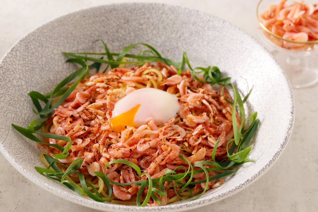 静岡県駿河湾産、春に美味しい「釜揚げ桜海老」を贅沢に使用したご褒美パスタ。
