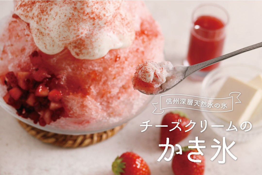 信州の中央アルプス系深層天然水を原水とした高純度な氷を使用したふわふわ氷のかき氷。