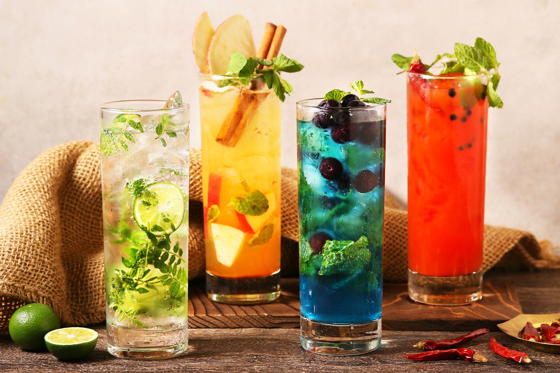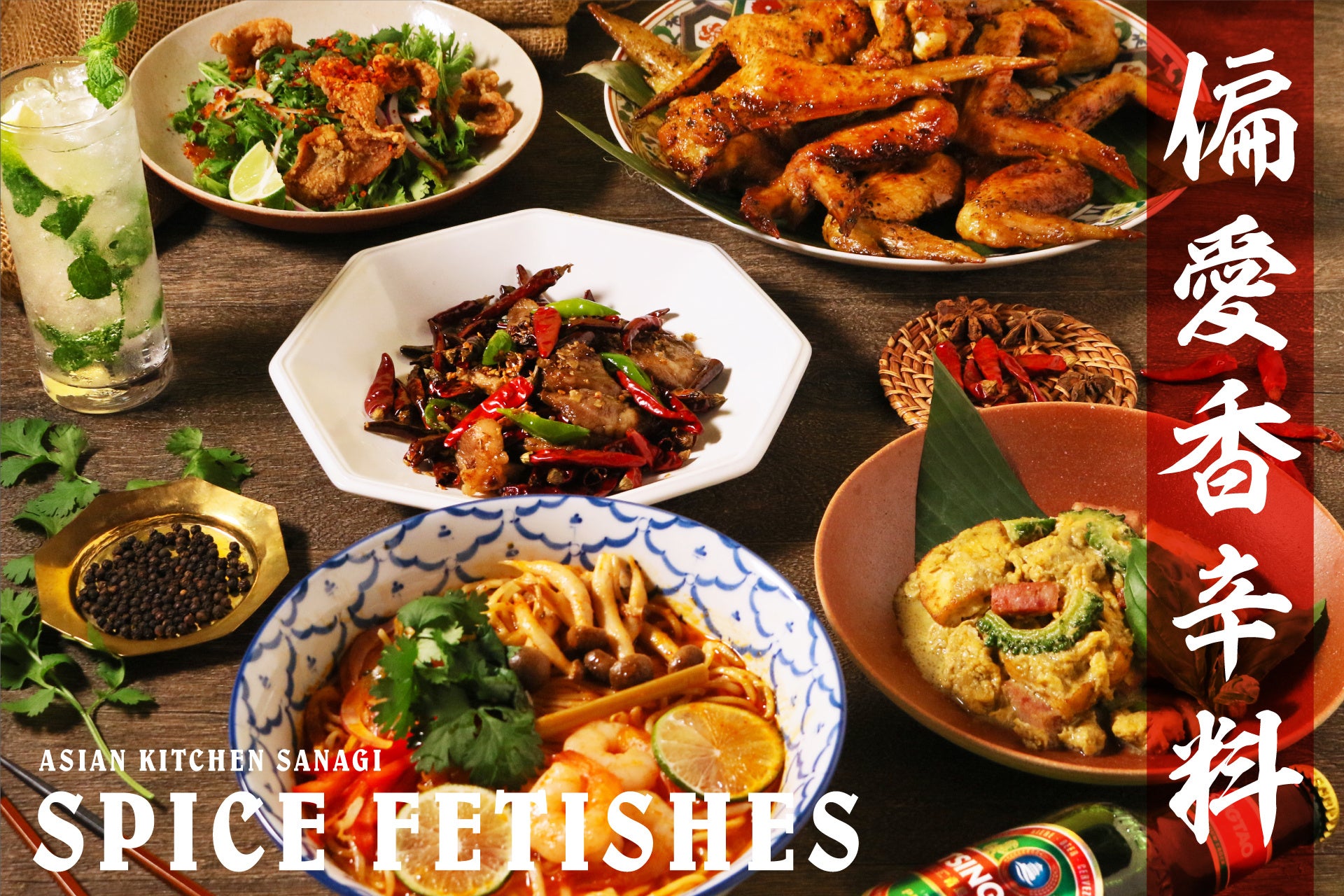 葉山椒とすだち、カルダモンジンジャー、アップルシナモンなど、スパイシーな料理を引き立てる個性豊かなオリジナルモヒート全11種をラインナップ。フェアメニューと一緒にお楽しみください。
