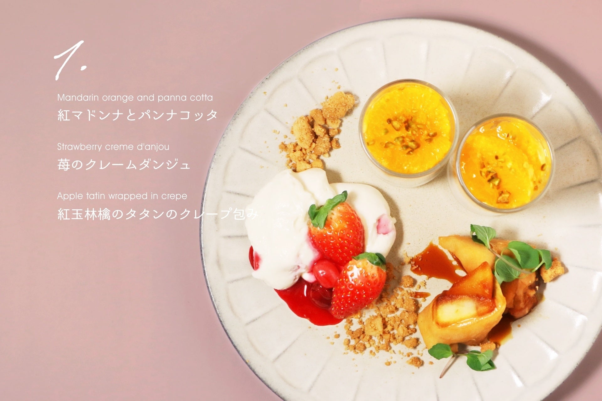 紅玉、紅マドンナ、柿など、この時期に美味しいフルーツを散りばめた華やかなラインナップが、冬の午後を彩ります。