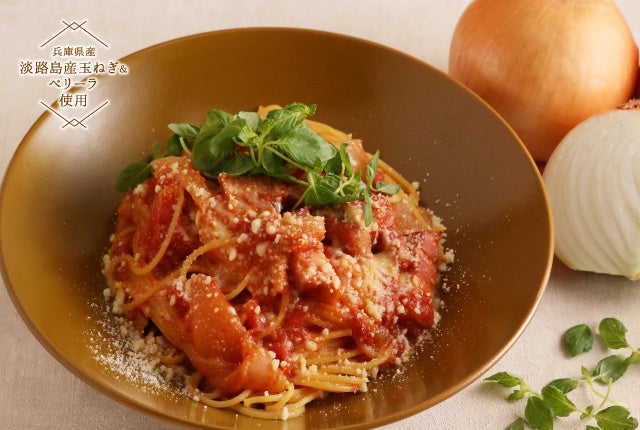 「淡路島産玉ねぎの味噌アマトリチャーナ」と「淡路島えびす鯛とあさりのハタハタ魚醤パスタ」を提供いたします。