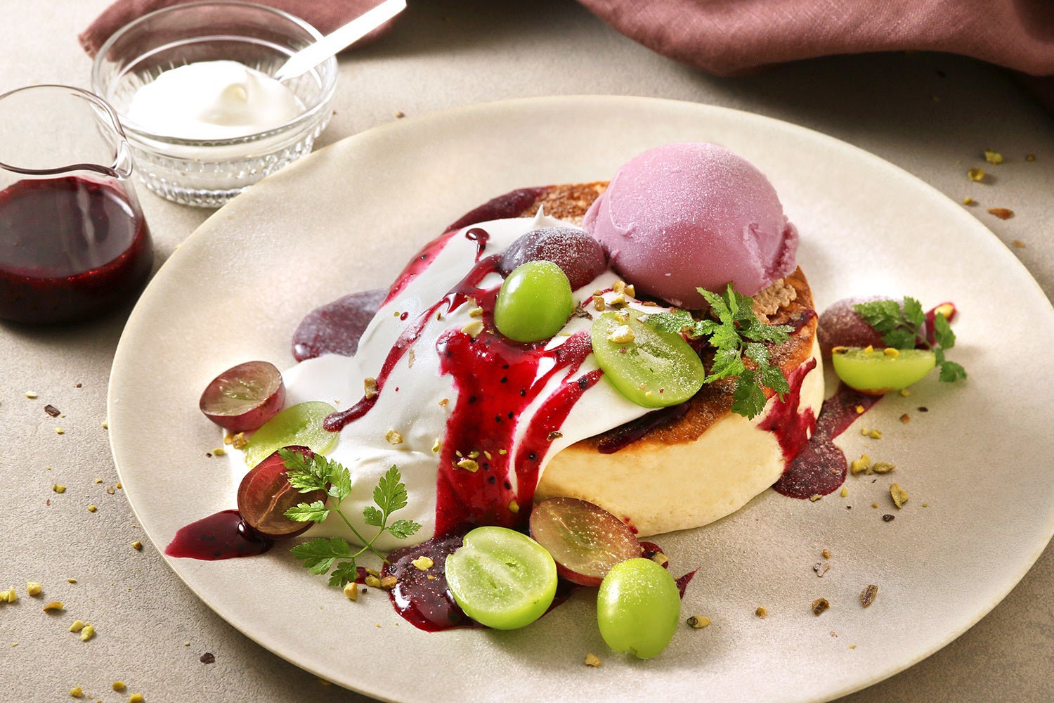 みずみずしいぶどう本来の美味しさを詰め込んだ秋限定パンケーキ。