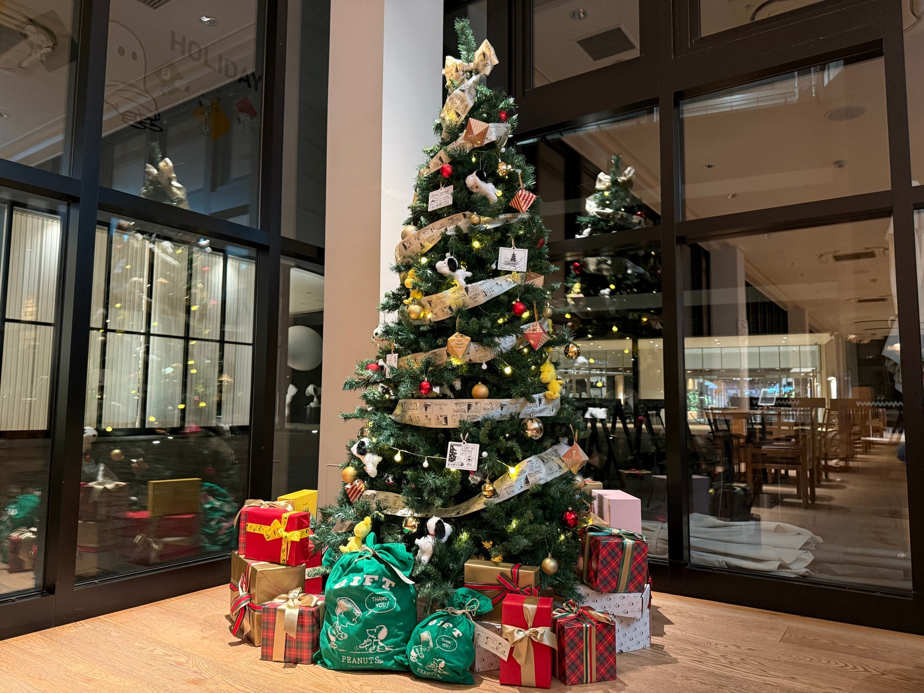 さらに、クリスマスのコミックが描かれたオーナメントやスヌーピーと仲間たちが施された存在感のあるリボンなどで飾られたクリスマスツリーや、ピーナッツ カフェらしさを表現した各店のクリスマス装飾もお楽しみください。