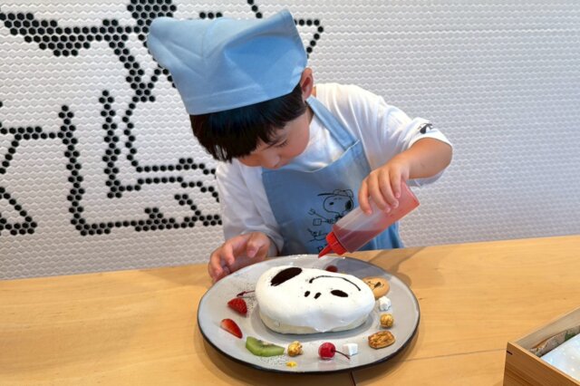 PEANUTS Cafeでは、ブランドコンセプトである “I'M NOT EATING, I'M DINING...”ただ食べているんじゃない、食事をしているんだをテーマに、「食べること」の大切さを楽しく食を通して伝えられる、親子で参加できるワークショップ第二回の開催が決定! 今回は、PEANUTS Cafe スヌーピーミュージアム(南町田)店での開催も決定! 参加者だけがもらえるスヌーピーのアートをあしらったオリジナルエプロンを身につけて、スヌーピーのパンケーキにフルーツやソースでデコレーションをし、自分だけのオリジナルパンケーキづくりを体験していただけます。 デコレーションは思いのまま!お子さまのワクワクをカタチにする、とっておきの時間を過ごしませんか? スタッフが丁寧にサポートするため、デコレーション体験が初めてのお子さまも安心してご参加いただけます。 また、付き添いの方は、お子さまが一生懸命に取り組むかわいらしい姿を、そばで見守っていただけます。 体験のあとは、作成したパンケーキとともにPEANUTSの世界観を満喫できる空間で、ゆったりとしたカフェタイムをお楽しみください。