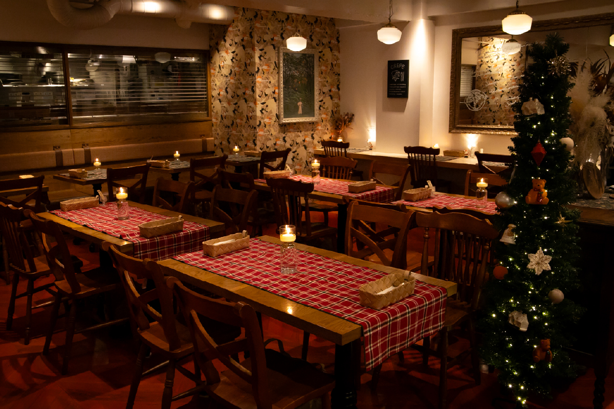 あたたかみのある空間で、心地よい時間を。ほっと温まる、クリスマスの店内へようこそ。