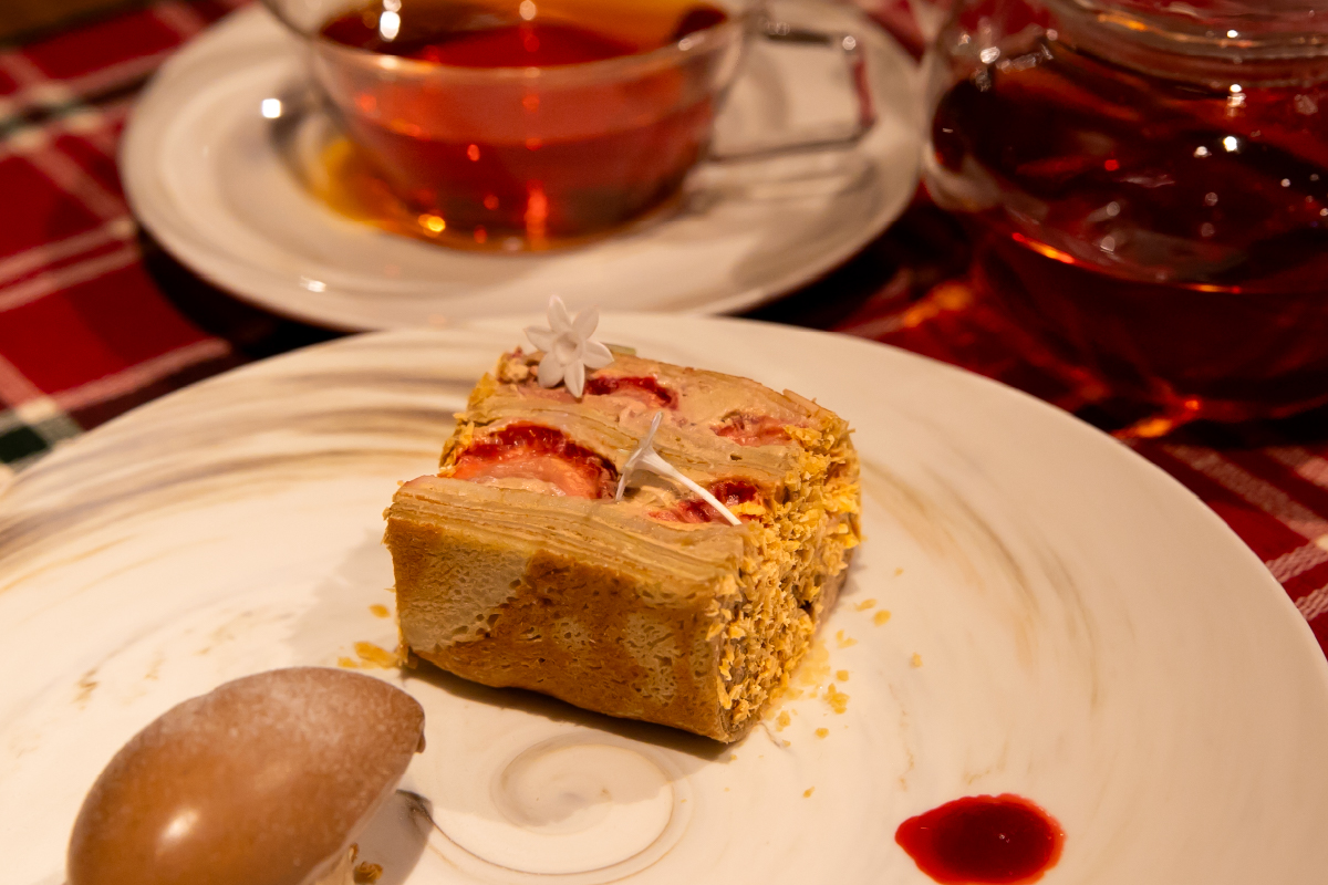 冬苺とロイヤルミルクティーのハーフミルクレープ 紅茶アイス添え