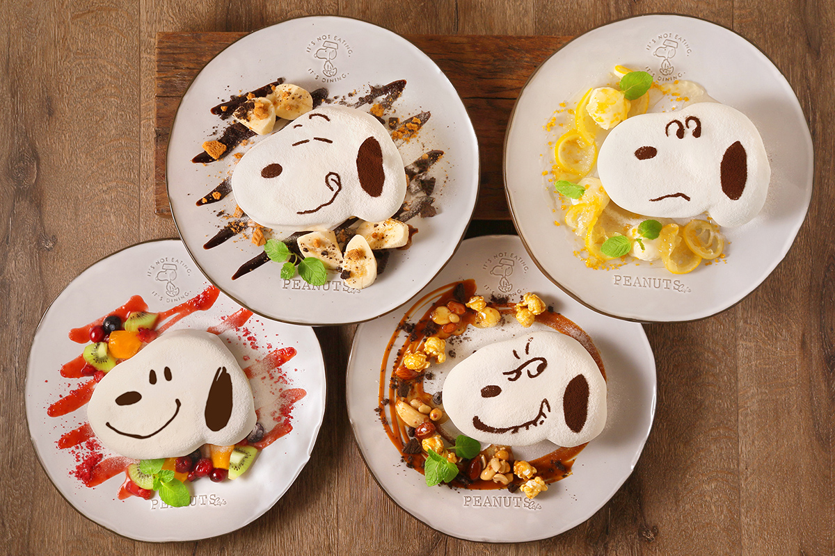 いろんな表情をしたスヌーピーのパンケーキ米粉を使用した生地にメレンゲを加えてふっくらと焼き上げ、とろーりミルククリームやフルーツで仕上げた、見た目もかわいいスヌーピーのパンケーキ。 お好みのトッピングや、その日の気分に合わせた表情を選ぶのもおすすめです。