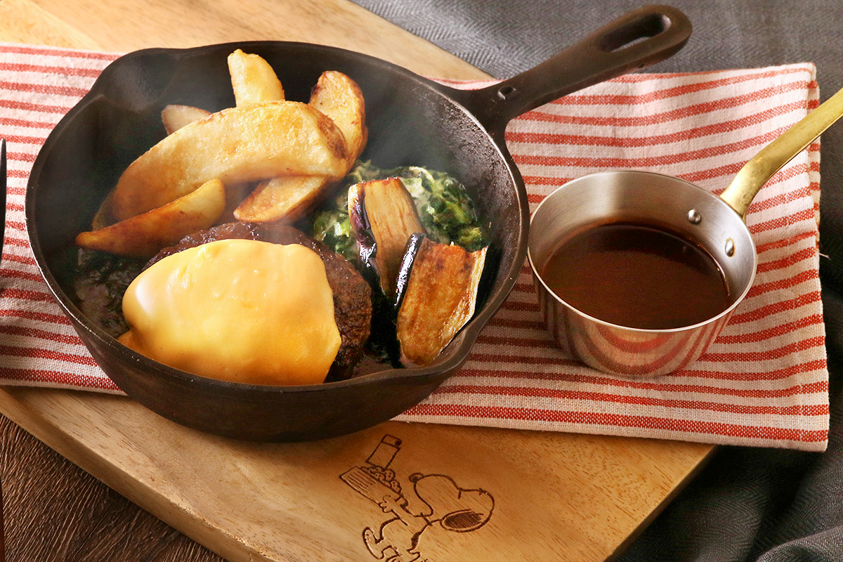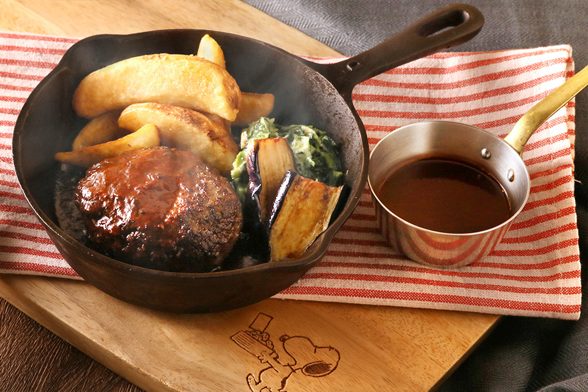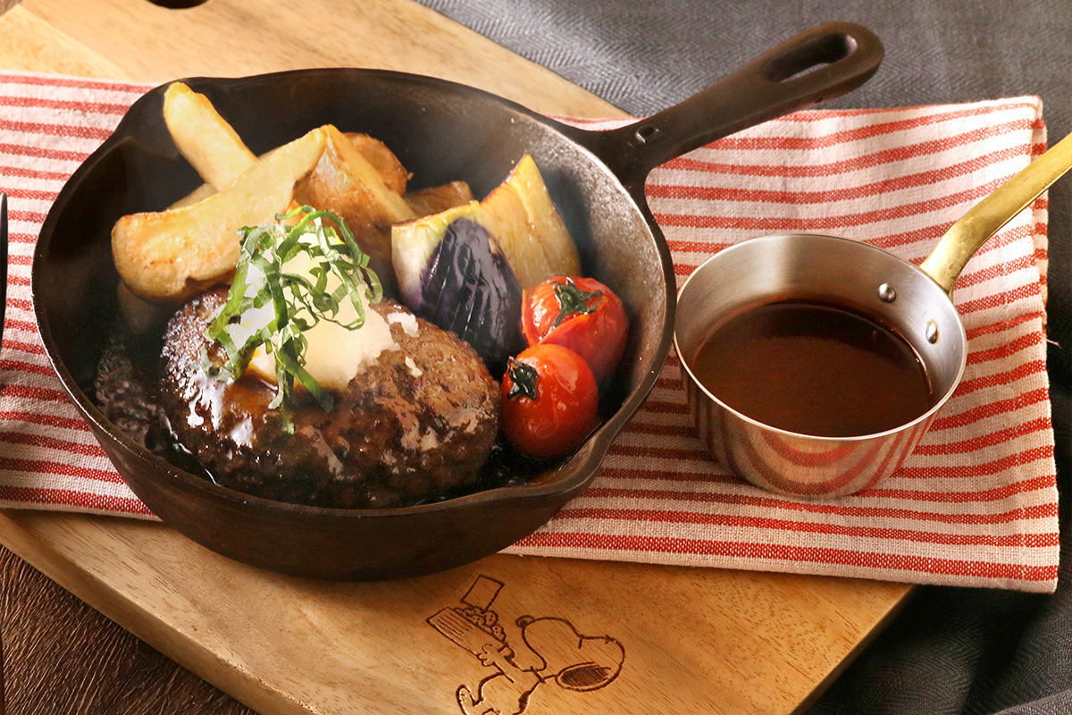 「淡路牛」を使用し、ビーグル・スカウトのキャンプフードをイメージしたハンバーグに加えて、オープン当初人気を集めたスヌーピーのパンケーキがリバイバルメニューとして登場します。