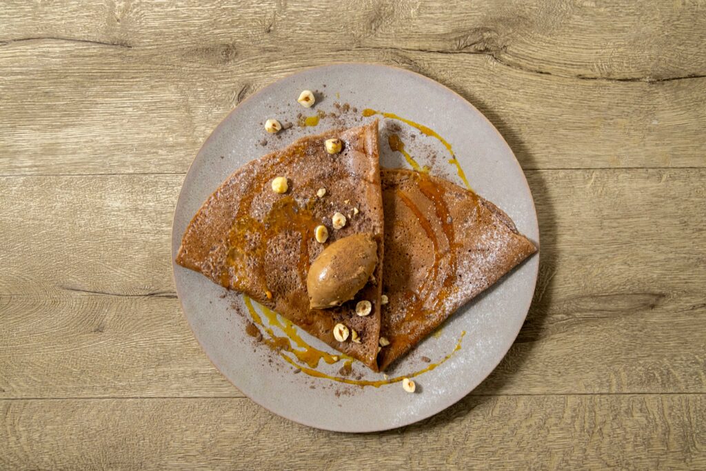 ◆クレープ・ショコラ (アールグレイ風味のガナッシュ、オレンジキャラメルソース、ヘーゼルナッツ)