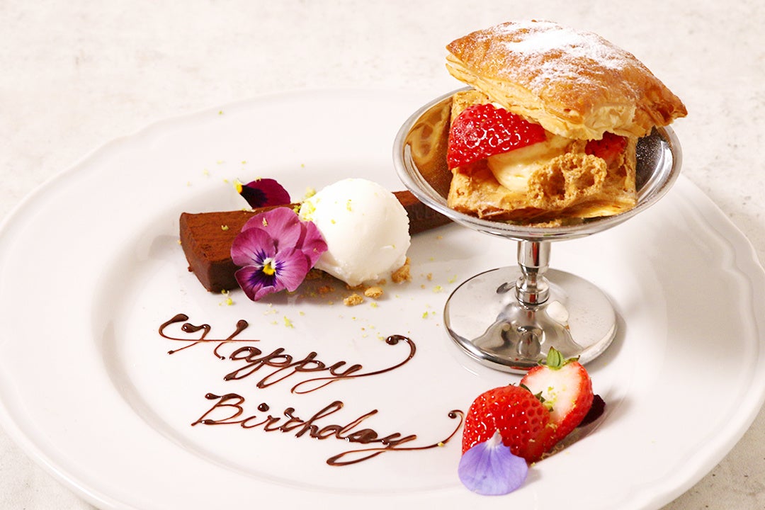 ▽記念日やバースデーでの華やかなドルチェプレートや個室利用でのパーティーなど様々なシーンで楽しめる