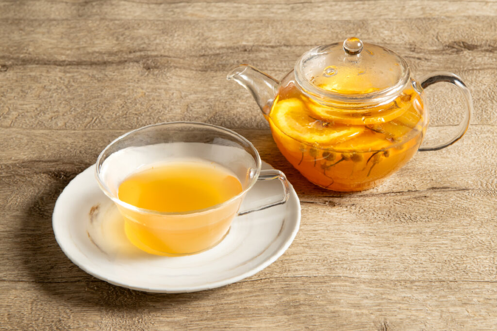 カモミール薫る紅茶に、オレンジ、ハチミツを合わせた温かいフルーツティー
